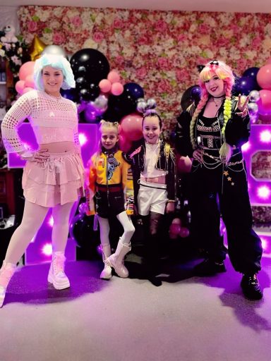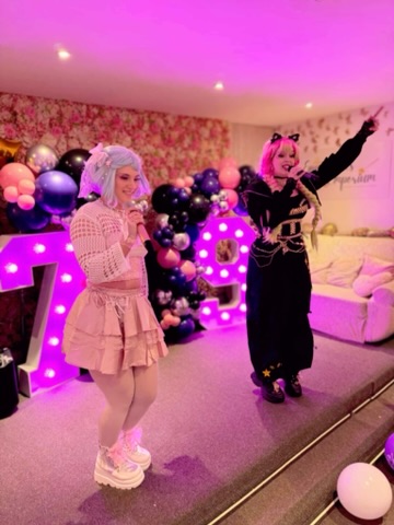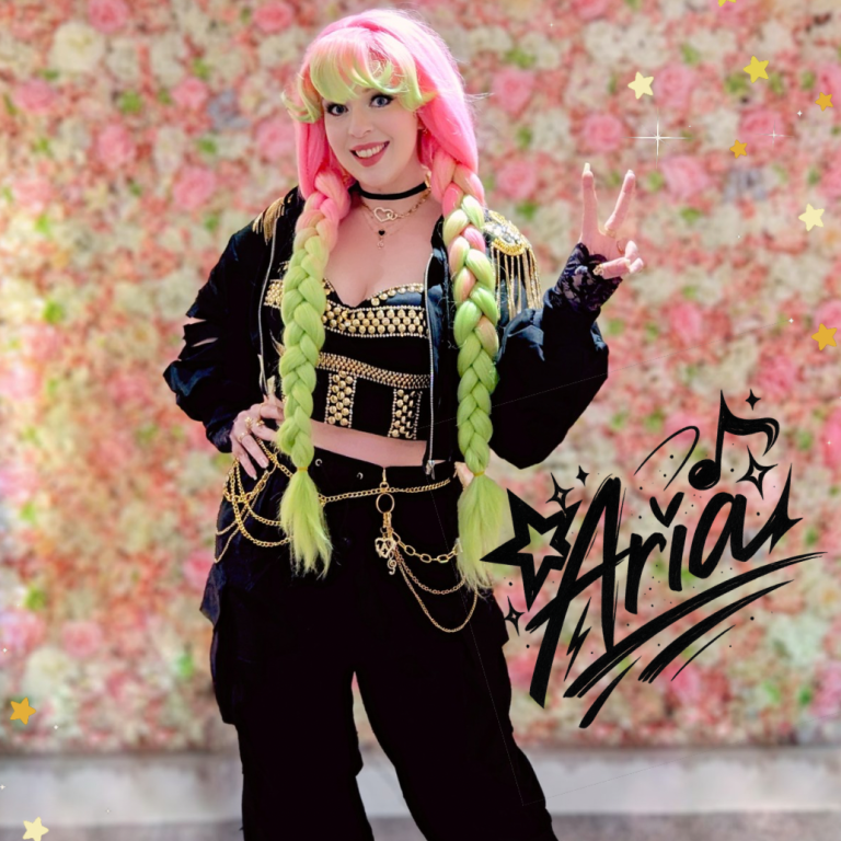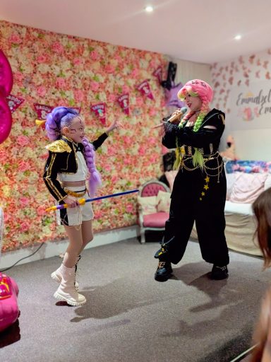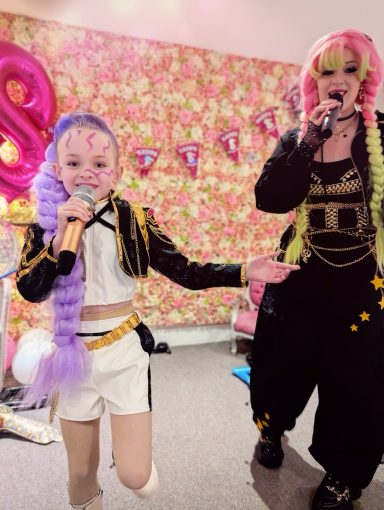For bigger celebrations (more than 8 children) or for those who want double the energy, Aria is joined by her fellow idol Nari – together, this dynamic duo bring even more sparkle, sass, and smiles, creating memories that last long after the final encore.